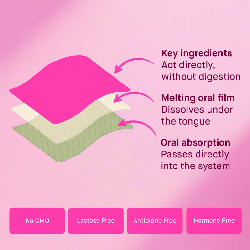 Designed to melt directly on your tongue, our strips allow for the immediate release of ingredients. This method promotes the efficient delivery of actives to support your natural sleep process, without waiting for a traditional capsule to digest.